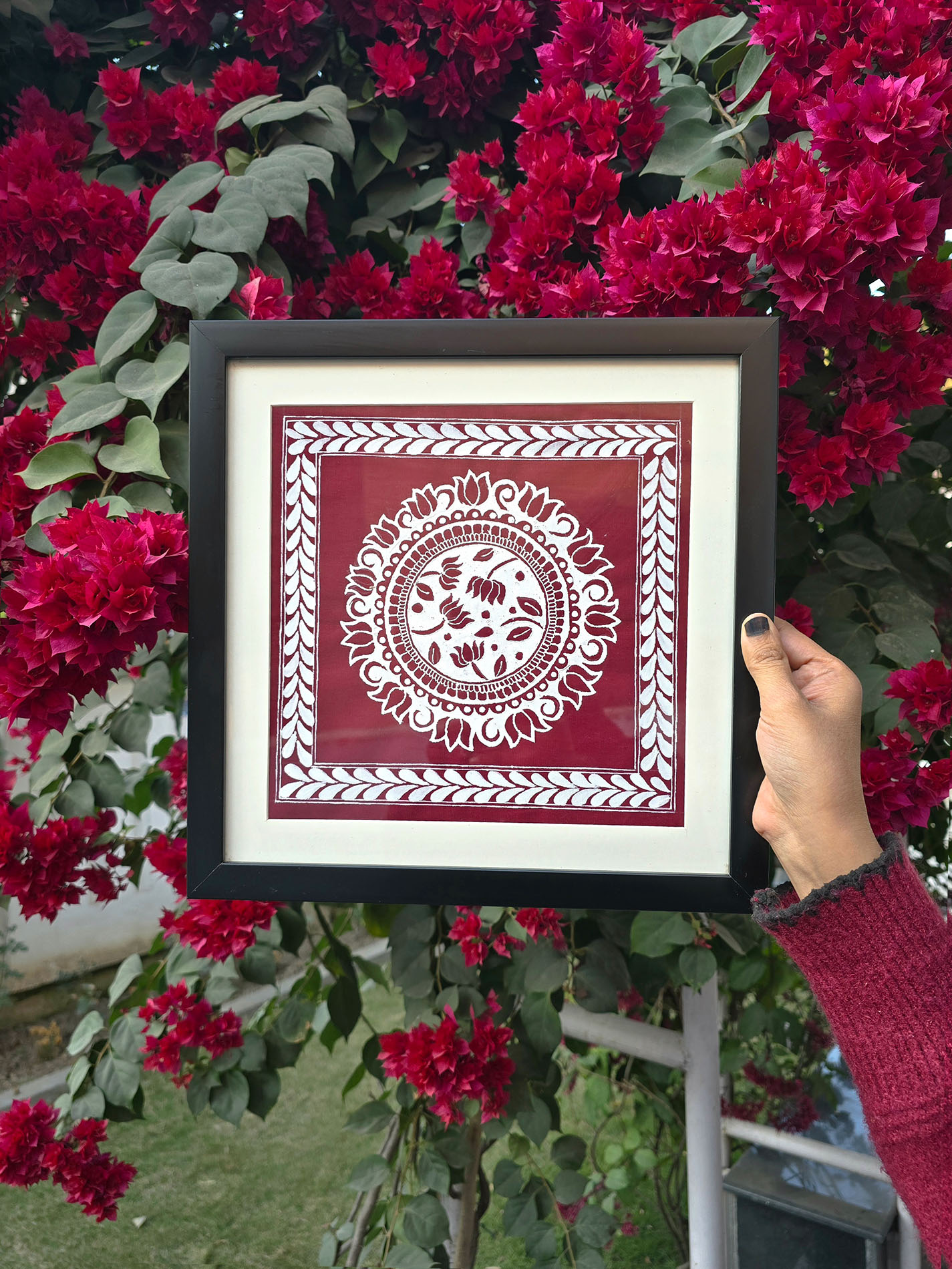 Handpainted Aipan Framed (Lotus Motif)