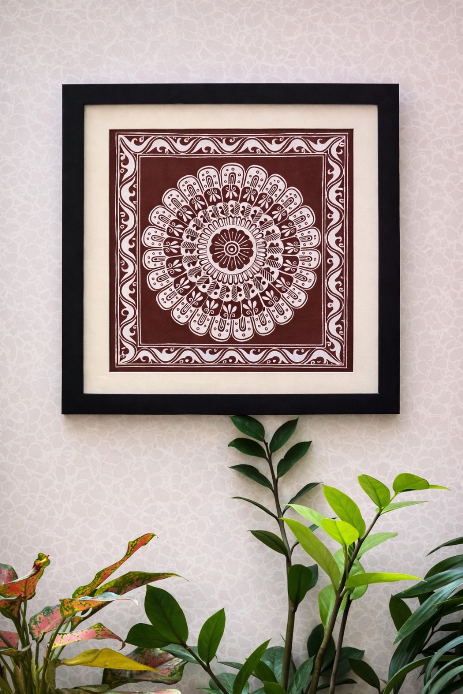 Handpainted Aipan Framed (Floral Pattern)