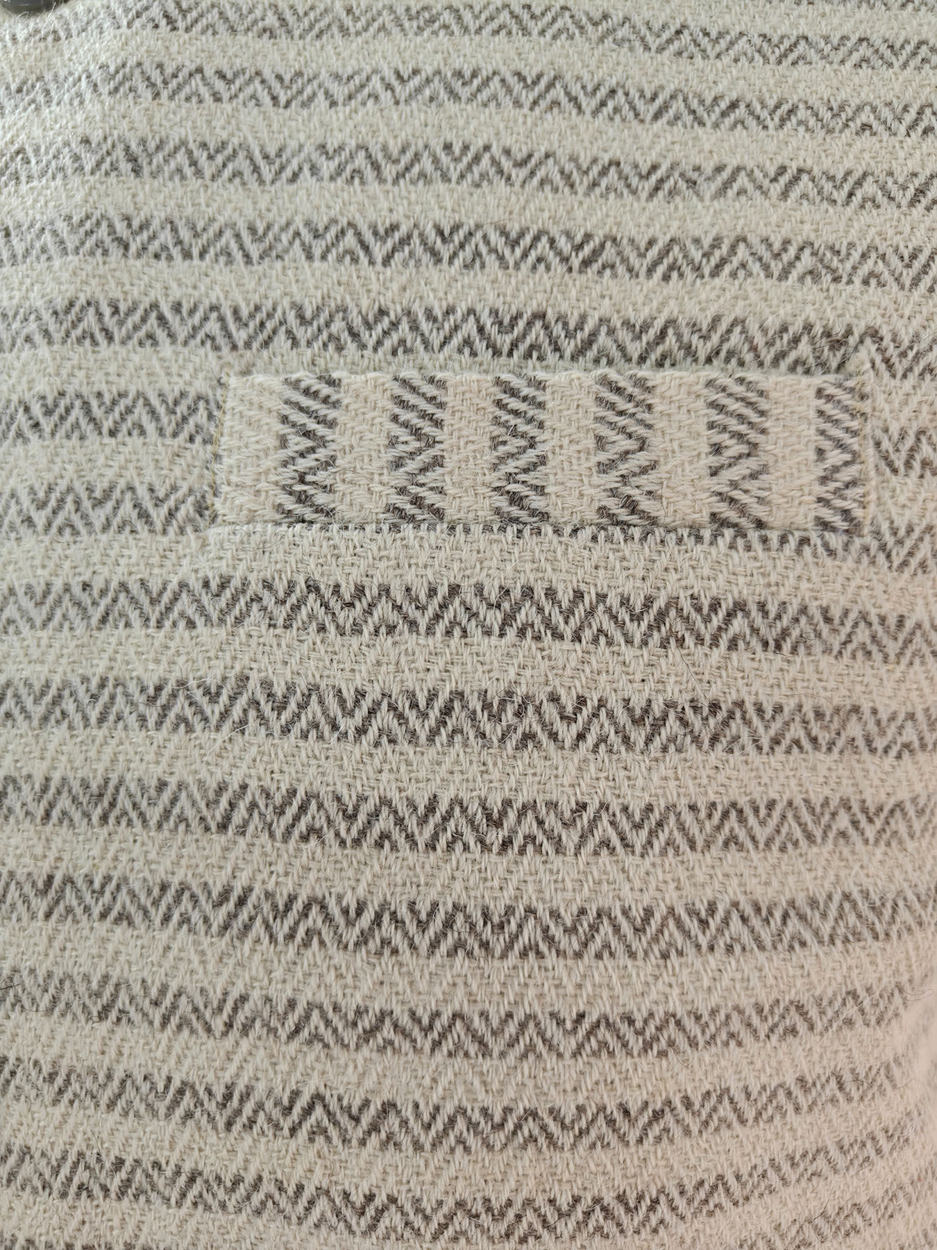 Crafted with care in the Himalayas, this waistcoat is handwoven from pure Himalayan wool, known for its exceptional softness and natural warmth. The fine weave features subtle zigzag patterns that add depth and character while keeping the look understated and elegant. Designed for winter layering, the waistcoat offers comfortable insulation without feeling heavy. Its breathable wool texture keeps you warm in cold weather while remaining gentle on the skin. The structured silhouette, classic buttons, and thoughtfully placed pocket make it a versatile piece—perfect for pairing with shirts or kurtas for both everyday wear and refined occasions. Each waistcoat reflects the timeless craftsmanship of Himalayan weaving traditions, making every piece unique.