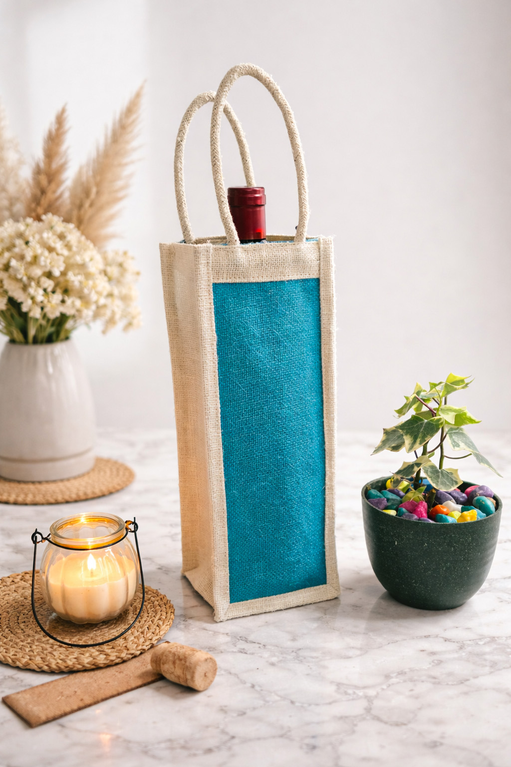 Crafted from high-quality, biodegradable jute, this bag creates a lasting impression of sustainability and thoughtfulness. Its sturdy handle ensures safe transport, while the natural texture complements any décor theme—from luxury heritage to modern eco-chic.