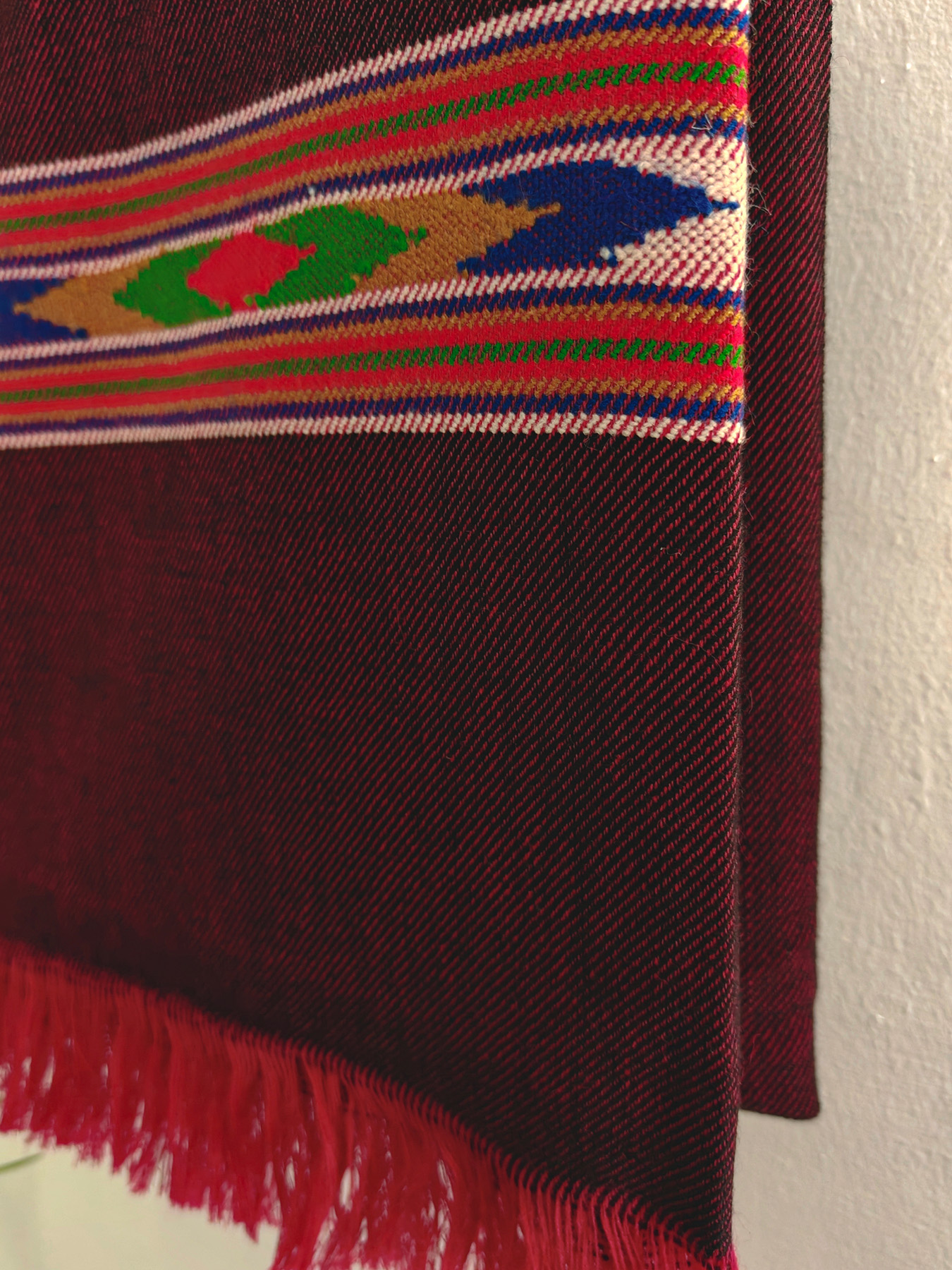 | Colour | Burgundy base with subtle traditional multicoloured handwoven border |