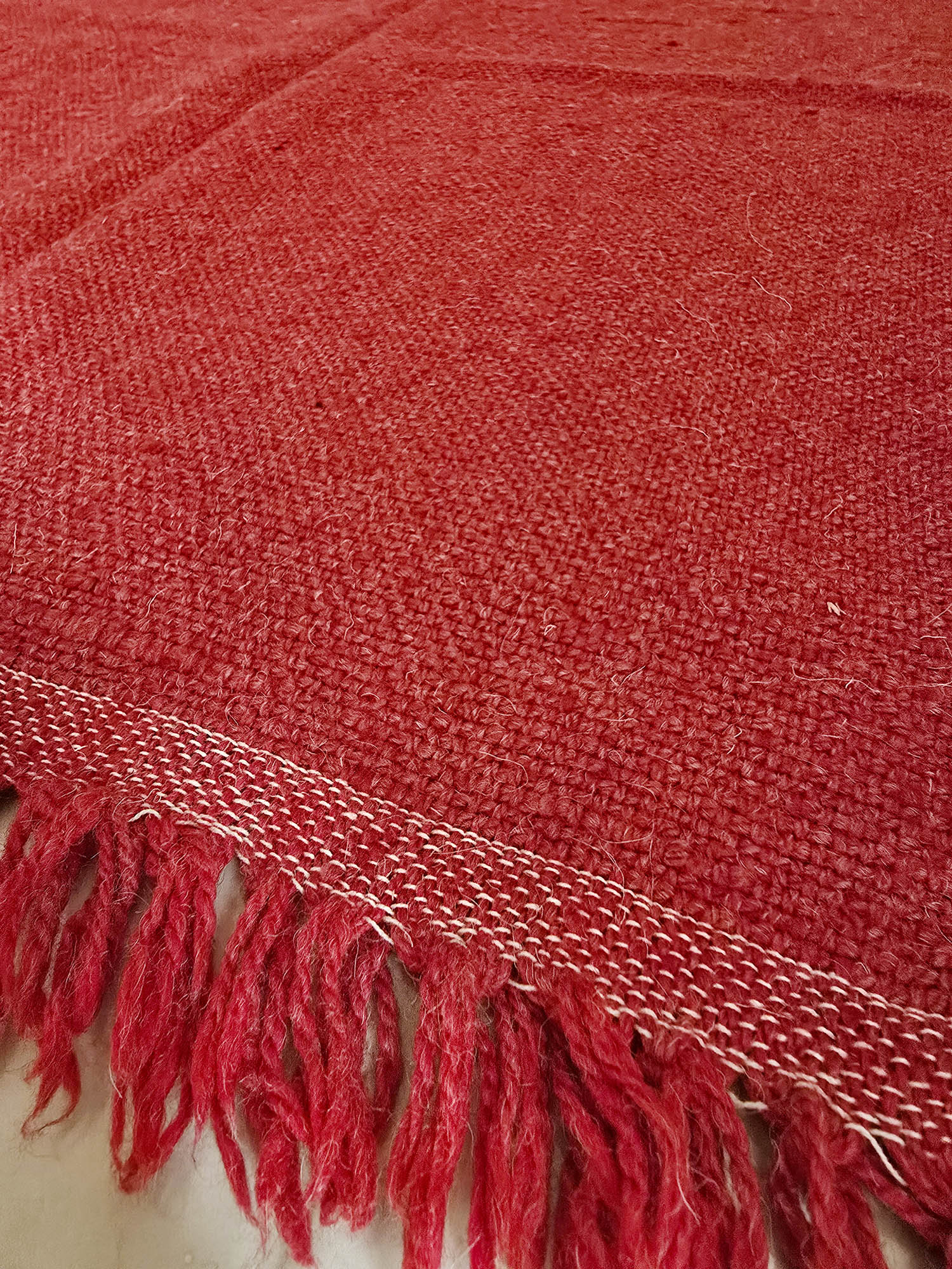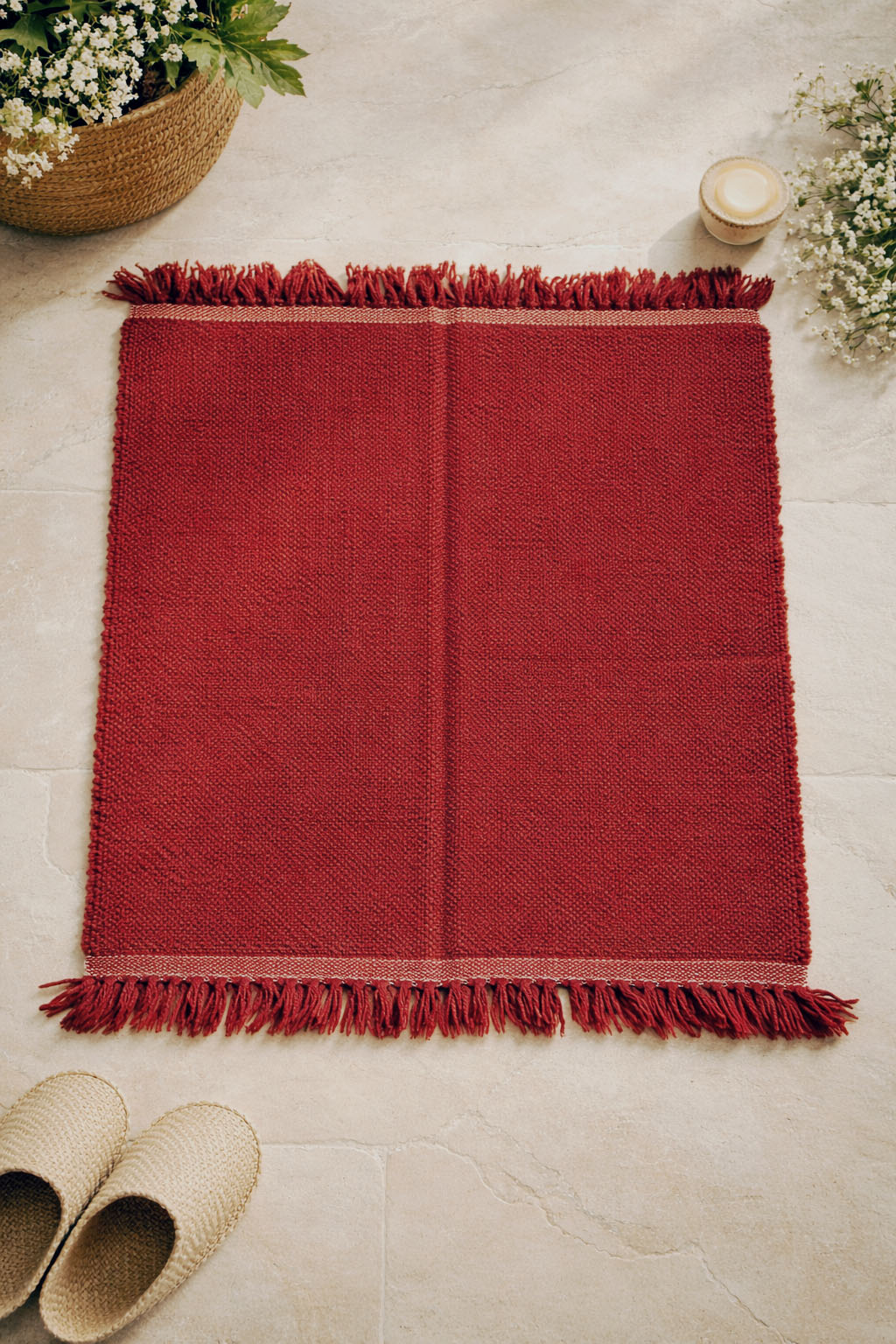 This handwoven Aasan is crafted from Premium Merino wool, offering natural warmth, comfort, and grounding during meditation, yoga, or daily rituals. The dense wool weave provides gentle insulation from cold floors while maintaining breathability for extended use. Soft yet sturdy, it supports stable sitting and enhances focus during long sessions. Finished with traditional fringed edges, it reflects timeless Himalayan craftsmanship. Ideal for indoor use in all seasons, especially winters.