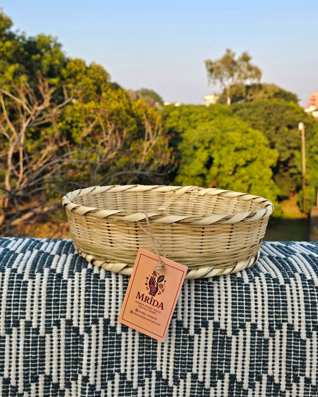 With its clean silhouette and organic texture, the basket blends seamlessly into modern homes — whether placed on a bathroom counter to organise essentials, on a dining table as a fruit basket, or on a study desk to hold daily items. More than just storage, it is a piece that brings warmth, craft, and conscious living into your home.